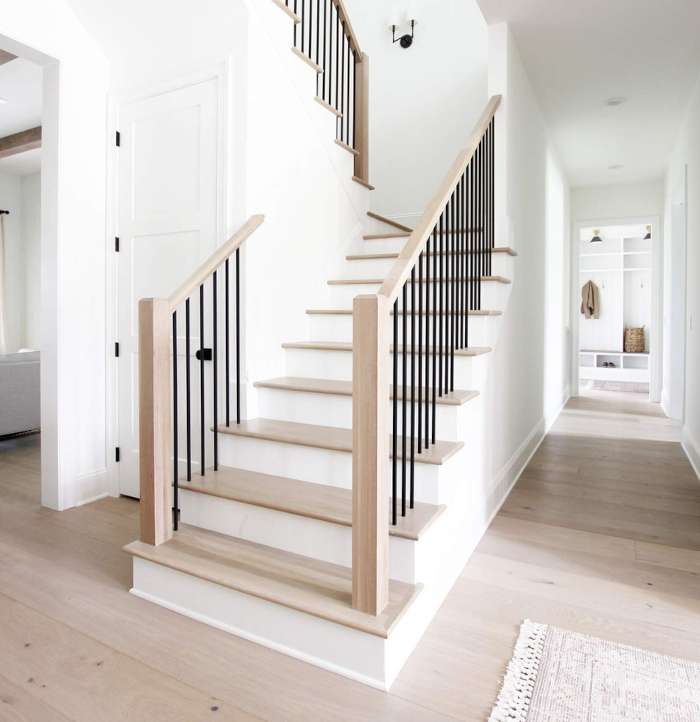 Handrails play a crucial role in both safety and aesthetics within a staircase design. These components, typically made from sturdy materials such as wood, or metal provide support and stability for individuals navigating stairs, ensuring a safe ascent and descent.