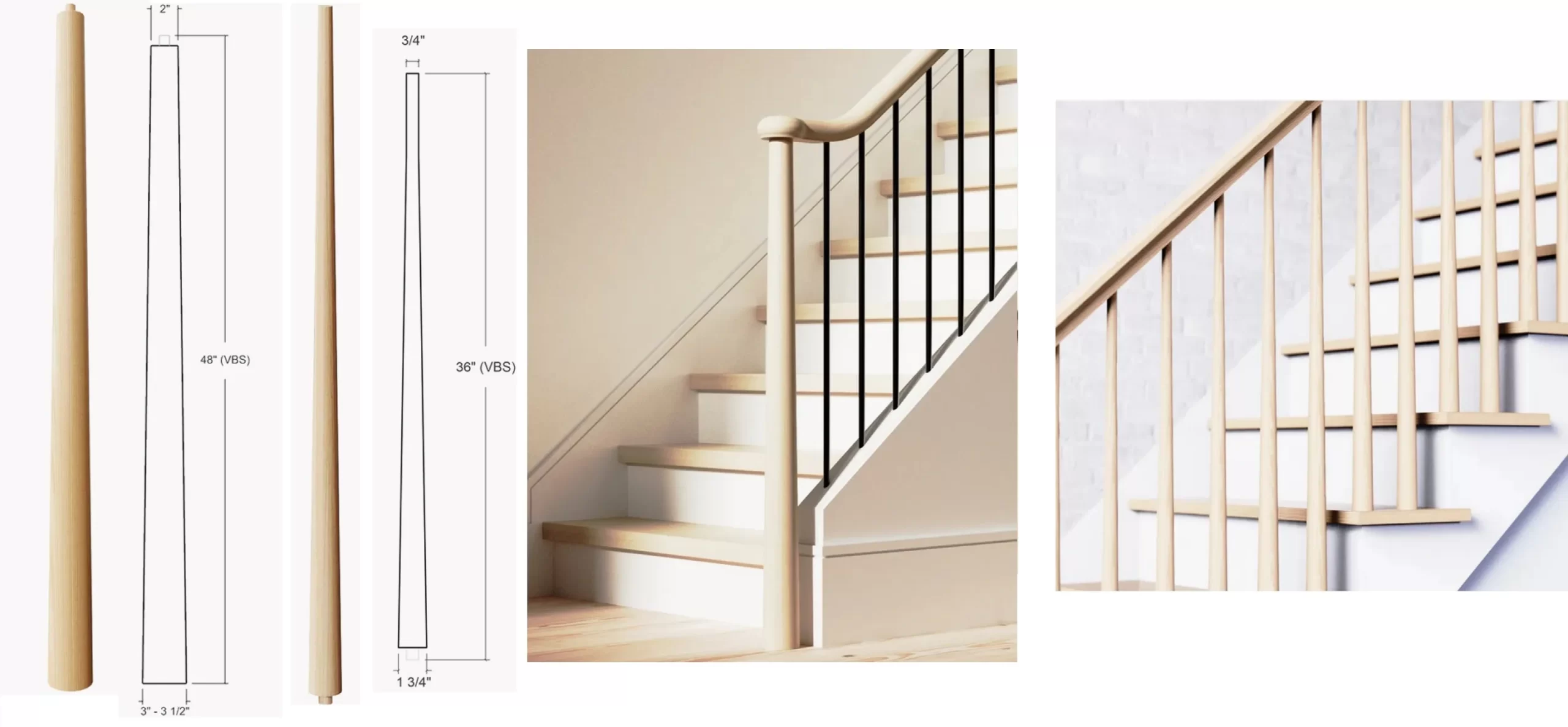 Our balusters offer the warmth and beauty of natural wood, adding character and charm to any staircase. They can be stained or painted to enhance their appearance and match existing décor.